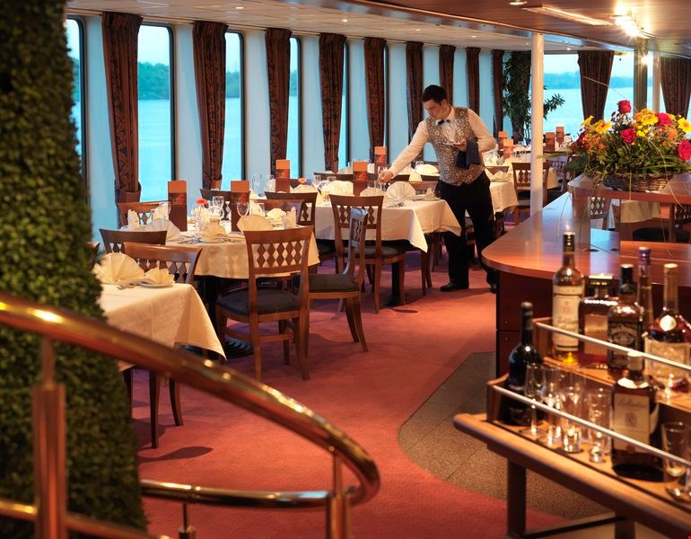 Από τη στιγμή που θα μπείτε στο εστιατόριο του πλοίου σας, να είστε προετοιμασμένοι για μια γευστική εμπειρία που θα ευχαριστήσει όλες τις αισθήσεις σας. Ο χαλαρός αλλά κομψός ενδυματολογικός κώδικας εξασφαλίζει ότι θα απολαύσετε ευχάριστες στιγμές σε ένα πανέμορφο περιβάλλον, ενώ η γαστρονομική ομάδα μας ετοιμάζει μια επιλογή από εξαιρετικά πιάτα χρησιμοποιώντας μόνο τα καλύτερα και πιο φρέσκα υλικά. Με κάθε γεύμα το βράδυ προσφέρονται δωρεάν κρασιά ποιότητας από τις καλύτερες αμπελουργικές περιοχές της Ευρώπης.