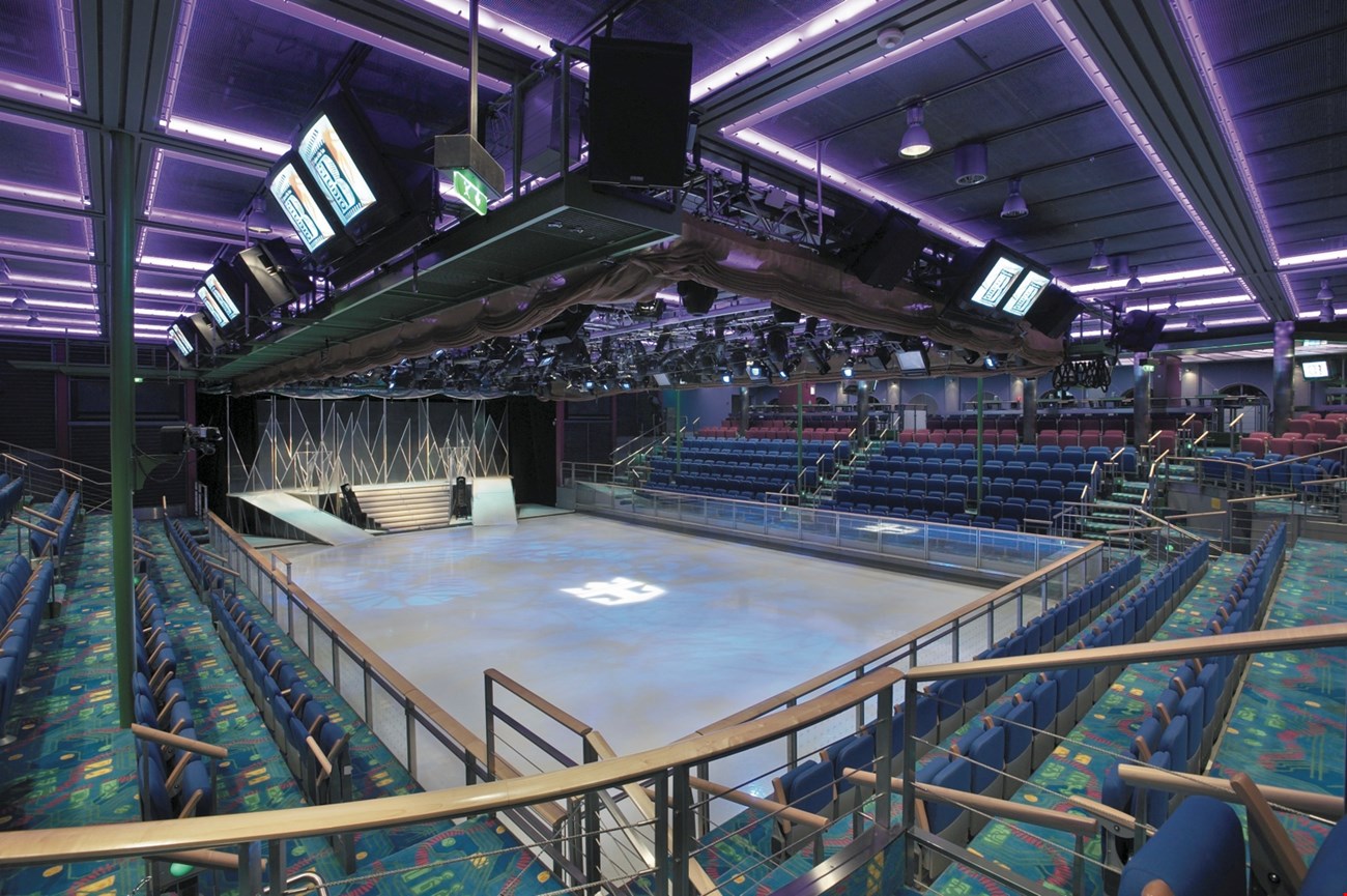 A cruise aboard Explorer of the Seas is full of surprises. The ship features the Perfect Storm Waterslides, the FlowRider surf simulator, a rock-climbing wall, basketball court, mini golf course, and the famous ice-skating rink, where dazzling performances take place. For those who prefer tranquility, the adults-only Solarium offers a luxurious retreat, while the Vitality Spa & Fitness Center provides the ultimate space for relaxation and rejuvenation.