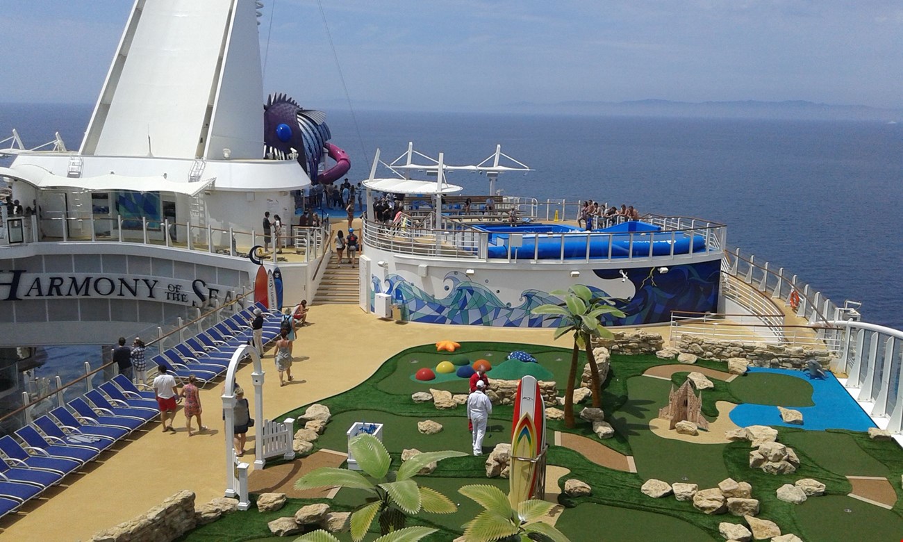 The Harmony of the Seas has been designed to deliver experiences that go beyond imagination. At the heart of the ship lie seven themed “neighborhoods,” including the Boardwalk, Central Park with its real trees and plants, and the Royal Promenade, filled with shops, bars, and entertainment venues. For those seeking adventure, the cruise features the thrilling Ultimate Abyss, the Perfect Storm Waterslides, the FlowRider® surf simulator, the ice-skating rink, and countless other activities.