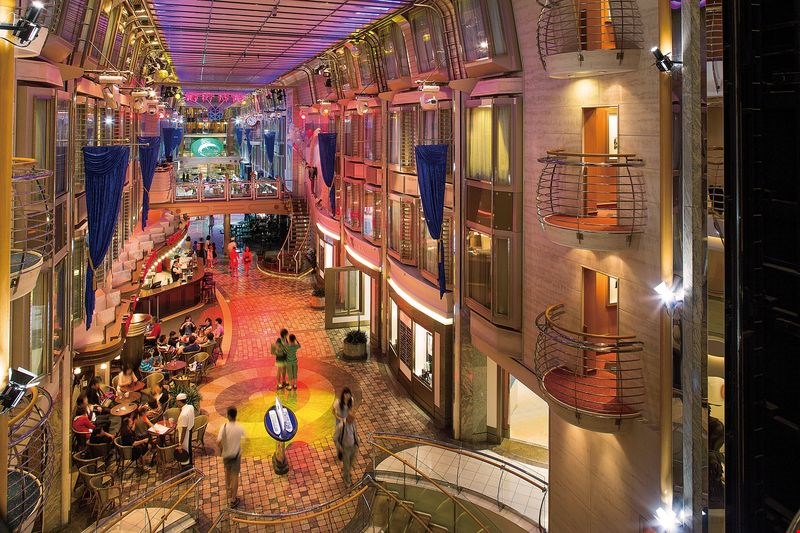 The ship also features the iconic Royal Promenade, a lively central “street” lined with shops, bars, and cafés — the heart of the cruise, buzzing with life, music, and vibrant energy.