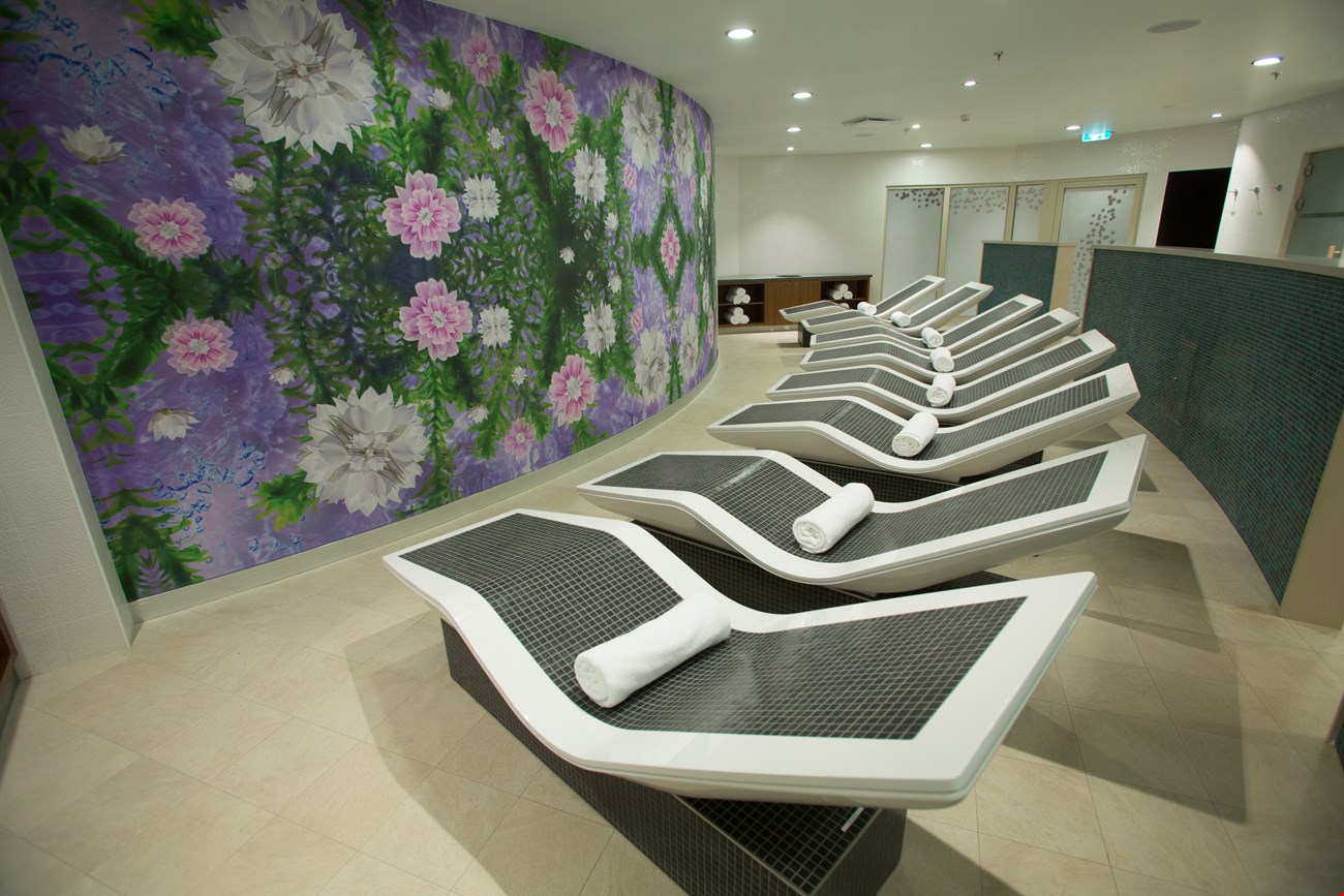 Amenities: Concierge Service, 24-hour access to Coastal Kitchen Restaurant & The Grove in Icon Class, bottled water in the cabin (on arrival), full access to the ship's Voom wi-fi, priority boarding and disembarking, priority dining reservations, access in Suite Lounge, access to Suite Sun Deck & Grove Suite Sun Deck in Icon Class, bathrobe for use on board, luxury linens, luxury bath products, Lavazza coffee maker
